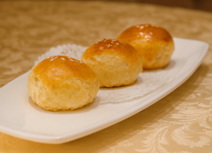 This traditional Chinese pastry is known for its flaky, golden outer layer which encases a filling made of preserved duck egg (century egg), lotus or mung bean paste, and ginger.